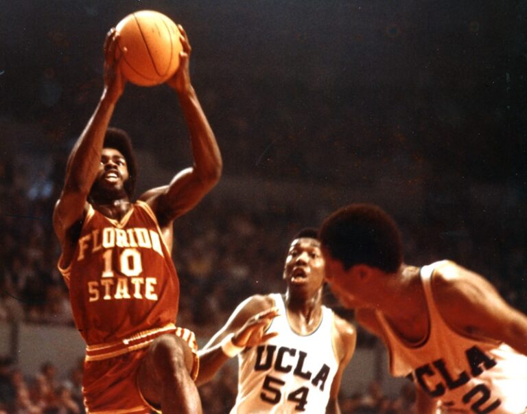 The Cinderella Seminoles made a postseason run for the ages in 1972. After knocking off Kentucky to win the Mideast Regional title, FSU stunned North Carolina in the Final Four to advance to the first — and only — NCAA Championship Game in program history. Coach Hugh Durham, F Ron King, C/F Reggie Royals and C Lawrence McCray met the dynastic UCLA Bruins in the final, setting up one of most notable games in Seminole history. Learn more about the star players and big plays behind FSU’s greatest postseason run to date.