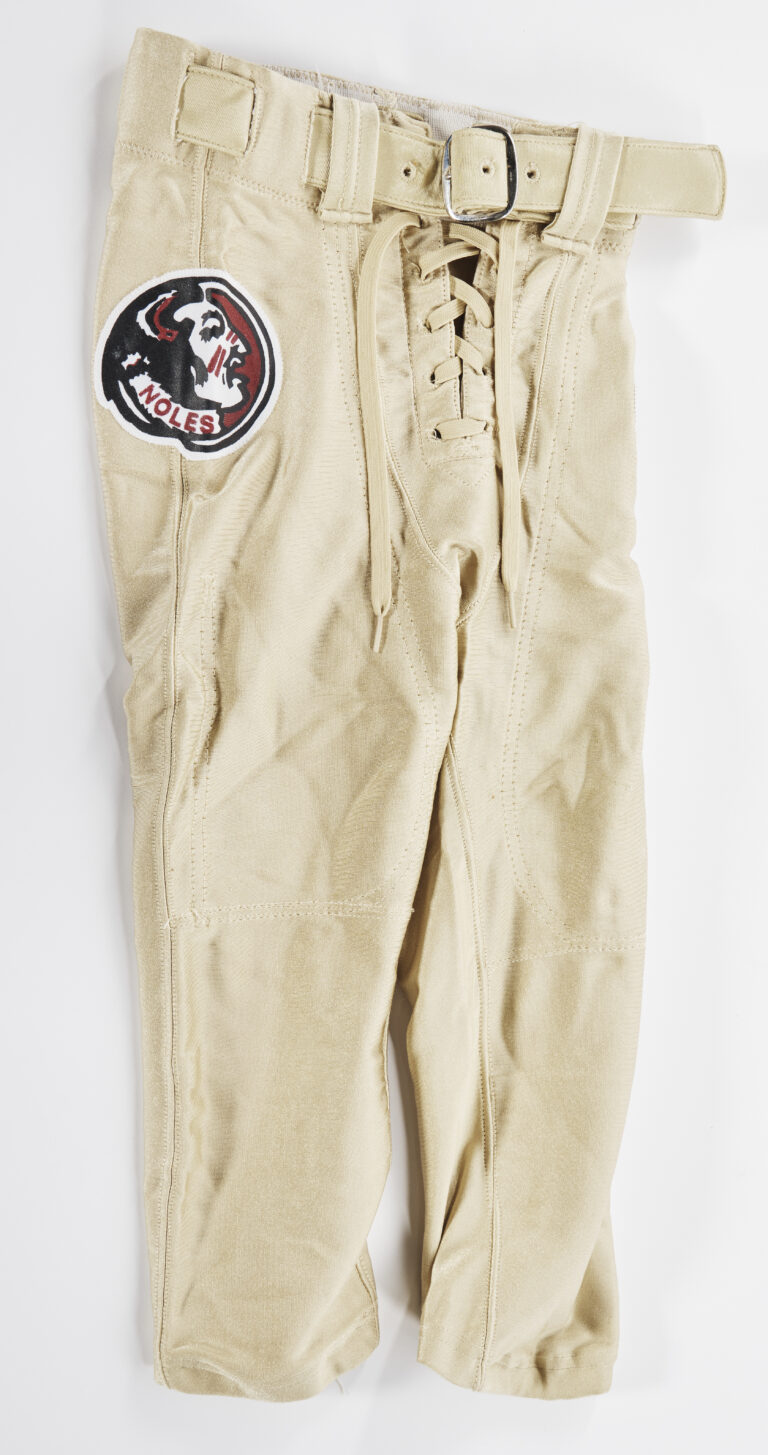 The Seminoles boast one of the flashiest uniforms in college football. Garnished in Garnet and Gold and Tomahawk-adorned helmets, FSU’s uniforms have been an integral part of the team’s identity since 1947. Take an up-close look at the wear and tear, modifications and game-used glory of Seminole uniforms and equipment.