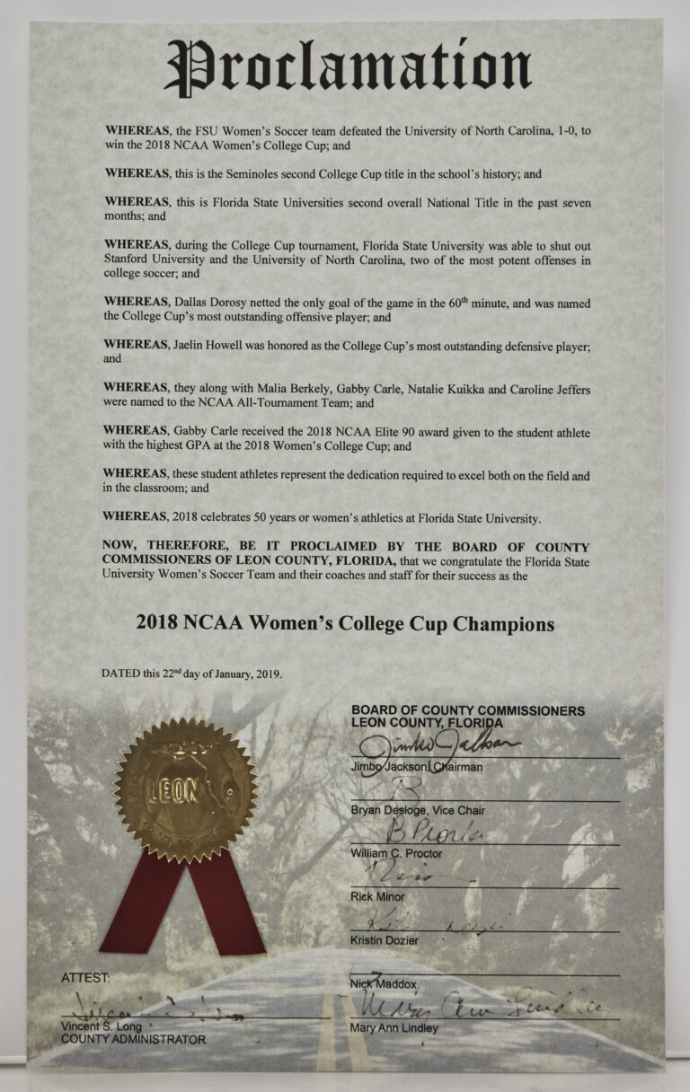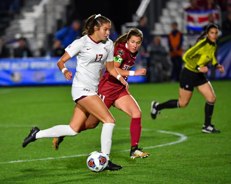 The Seminoles entered the national spotlight in the early 2010s with consistent runs to the College Cup. But after missing the Final Four two years in a row, the team was determined to get back in it during the 2018 season. With a strong roster including M Jaelin Howell, D Natalia Kuikka, M Yujie Zhao and D Malia Berkely and an award-winning head coach in Mark Krikorian, FSU boasted a 20-4-3 record. The No. 5 Noles defeated the No. 3 North Carolina Tar Heels in the College Cup Final to secure the second National Championship in program history and kickstart a dynasty still reigning today.