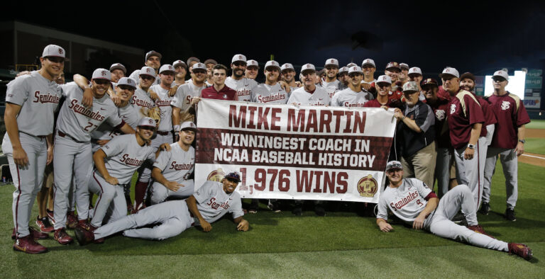Considering the hundreds of college programs and thousands of games in NCAA baseball history, becoming the sport’s winningest coach is an extraordinary achievement. For Mike Martin, it was just another day in the office. The Noles knocked off ACC rival Clemson 3-2 in 13 innings to clinch Martin’s record-setting 1,976th win. He surpassed college baseball legend Augie Garrido for the No. 1 spot, breaking Garrido’s win total in 246 fewer games. “The record means that for awhile it’s going to have Florida State’s name (on it),” Martin said. “That’s what means so much to me because that’s the university that gave me a chance to coach. I’m very fortunate.” Martin ended his career with 2,029 wins, a record likely to stay intact for quite some time.
