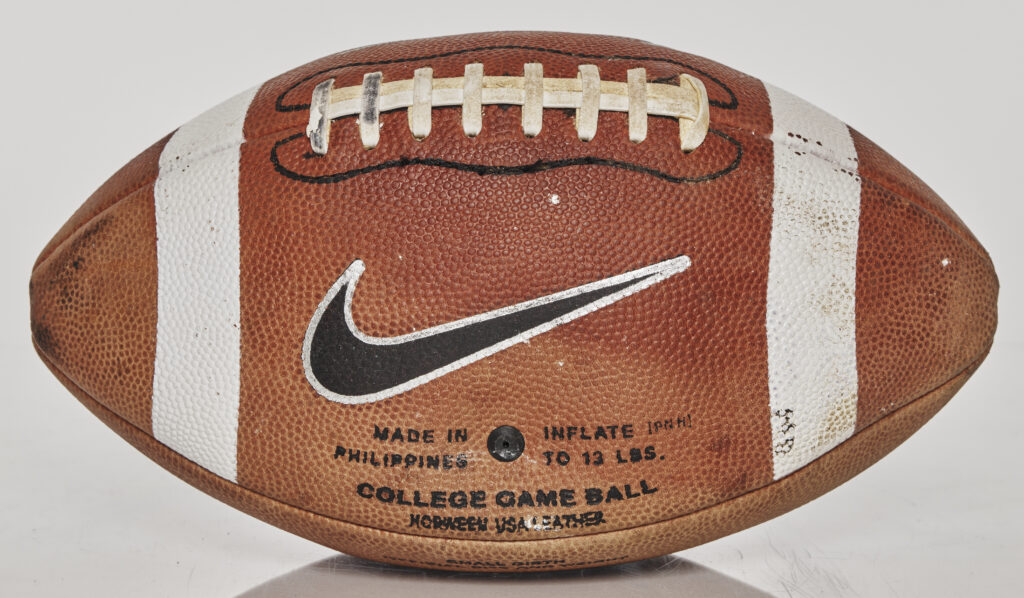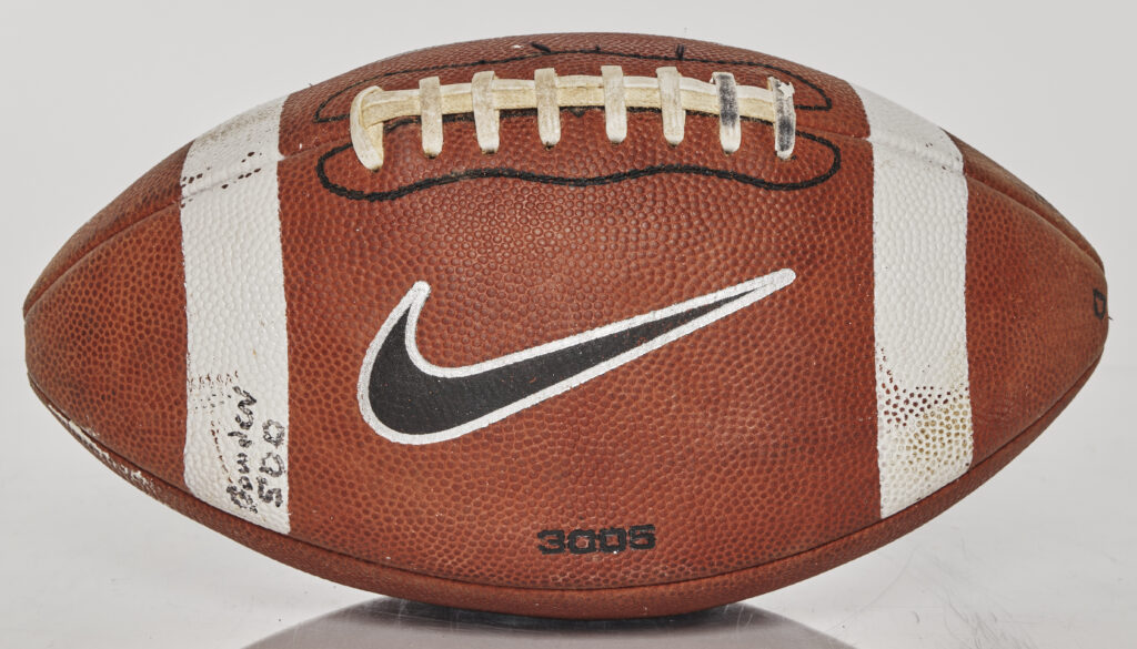 This game-used Nike football comes from FSU’s 39-21 win over Colorado on September 27, 2008, marking Bobby Bowden’s 500th all-time game coached. He became just the third coach with 500 career games in major college football history. Played in Jacksonville, the game featured a dominant performance from RB Antone Smith, who rushed for 154 yards and three touchdowns, while the Seminole defense kept the Buffaloes in check. Though not all 500 games are officially recognized by the NCAA, this milestone was deeply meaningful for Bowden and the FSU faithful.