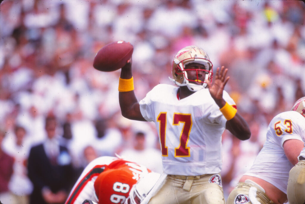 Charlie Ward spent all five years of his college career with the Seminoles. After redshirting his sophomore season and playing for the FSU basketball team, Ward became the full-time starting quarterback — and the first Black starting QB in program history — beginning in the 1992 season. Over the next two seasons, Ward compiled 5,679 passing yards and 49 touchdowns. His efforts were rewarded as he was named the co-MVP of the National Championship game for the 1993 season, along with Nebraska quarterback Tommie Frazier, and, more importantly, the first Heisman winner in program history.