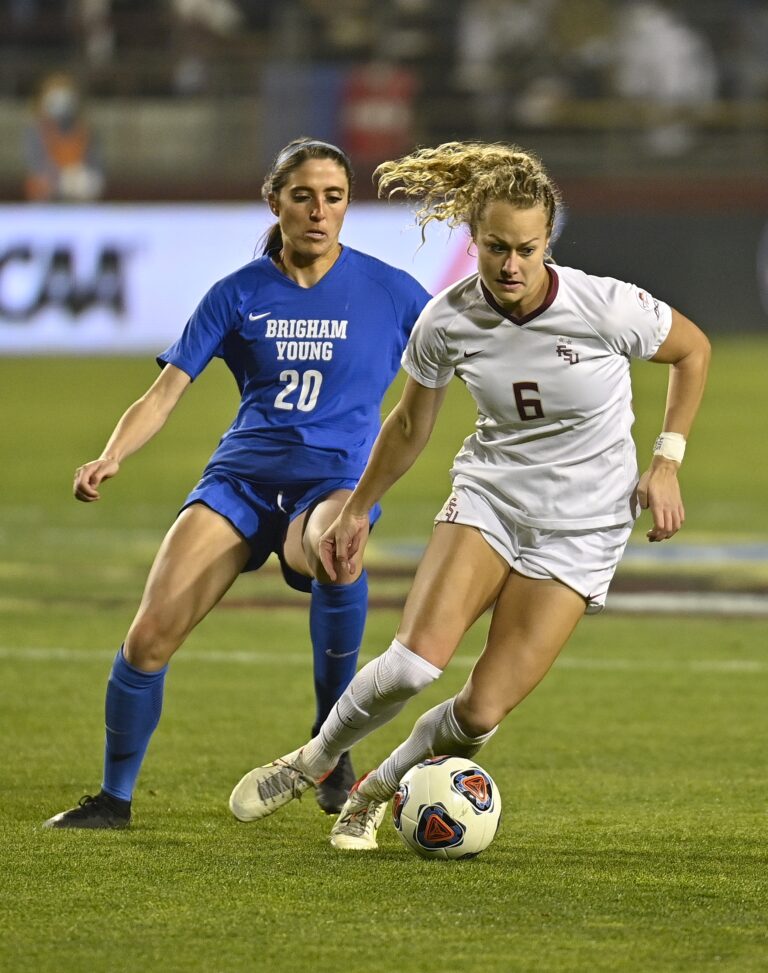 In 2021, captain Jaelin Howell guided FSU to their second National Championship victory in four years. An anchor of the defensive line, Howell led a defense that averaged only 0.5 goals allowed a game. The All-American midfielder also won a Golden Nole Award, highlighting Howell’s contributions to the team as well the Tallahassee community. After her Seminole career, Howell was drafted second overall in the 2022 NWSL Draft to Racing Louisville FC.