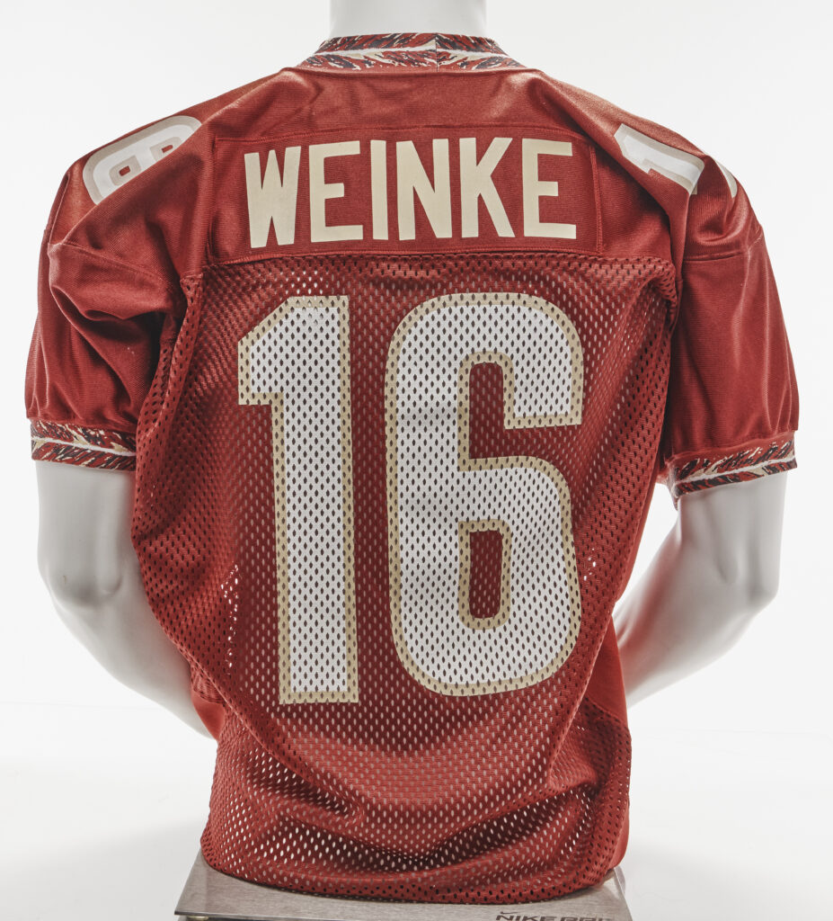 Future Heisman-winning QB Chris Weinke matched a Seminole record during the team’s final home game of the 1999 season by tossing six touchdown passes, including three to WR Peter Warrick, in a 49-10 rout over the Maryland Terrapins. Weinke’s dominating performance allowed backup QB Marcus Outzen to take over the reins late in the third quarter. This win secured FSU’s 13th consecutive 10-win season.