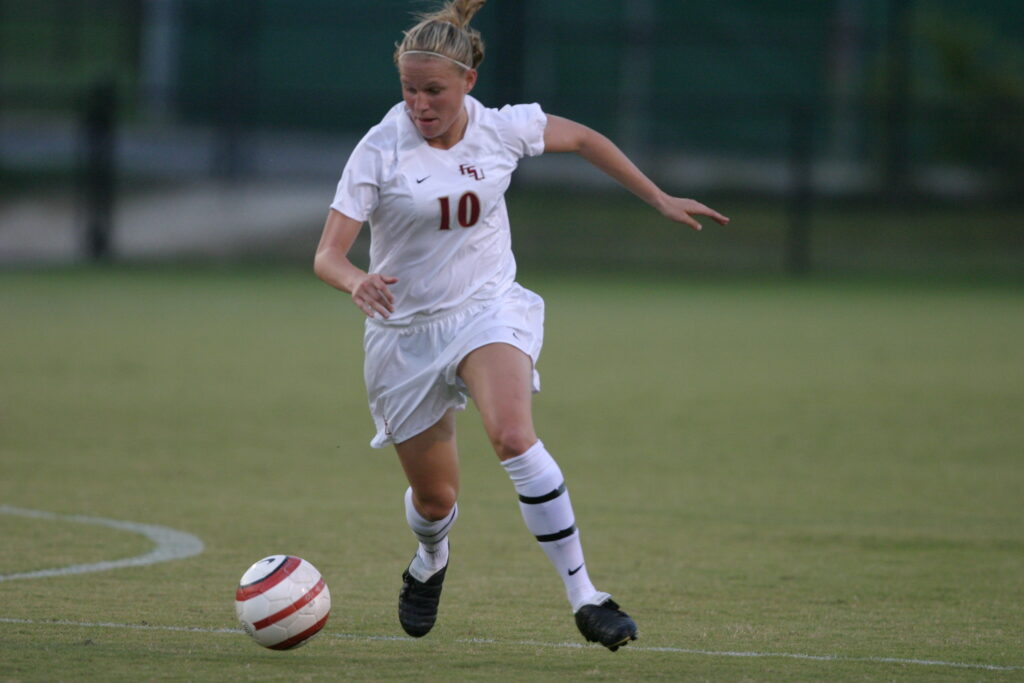 D Kelly Rowland joined the Seminole soccer squad at just the right time. A native of Wallingford, Pennsylvania, Rowland came to Tallahassee as one of the nation’s top recruits and made an immediate impact when she stepped on the pitch. Rowland quickly became known for her sharp defending and last-minute heroics. As a freshman in the 2003 season, she notched six goals and four assists on the way to FSU’s first College Cup appearance in program history. For these efforts, she was named a First-Team Freshman All-American. Rowland’s commanding presence in her first year and the next three after set Seminole soccer on the path to becoming the national powerhouse the program is today.