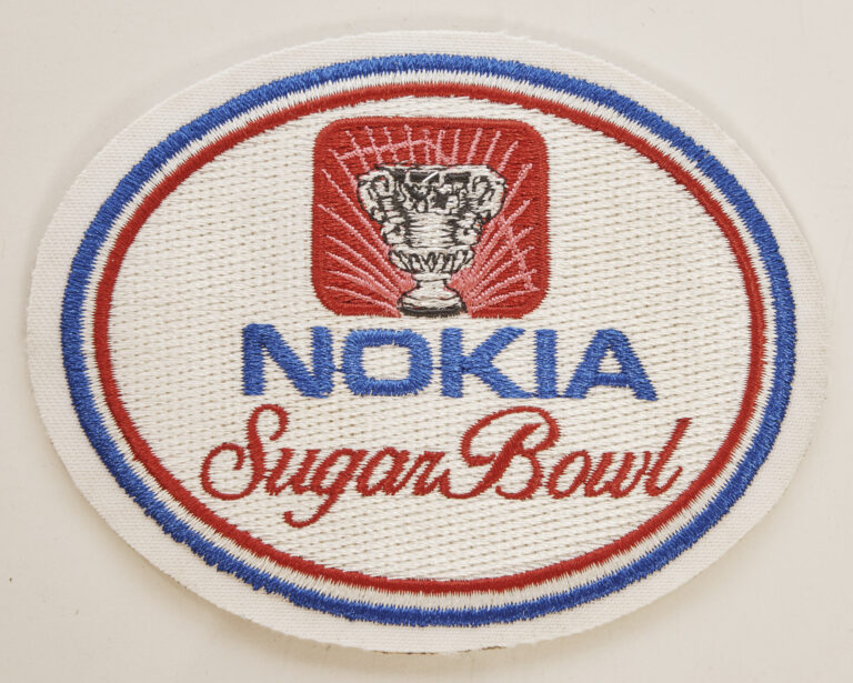 This style of Nokia Sugar Bowl patch was worn from 1995 through 1999, an era when FSU made three trips to New Orleans (1995, 1997 and 1998). Each matchup showcased the Seminoles at the height of their dominance in the 1990s. In the 1995 Sugar Bowl, QB Danny Kanell led FSU to a 23-17 victory over Florida. In 1997, FSU fell to Florida 52-20 in a national title showdown that gave the Gators a championship. The 1998 Sugar Bowl saw QB Chris Weinke and FSU take on Ohio State, winning 31-14 behind a stout defensive effort and a breakout performance from WR Peter Warrick.