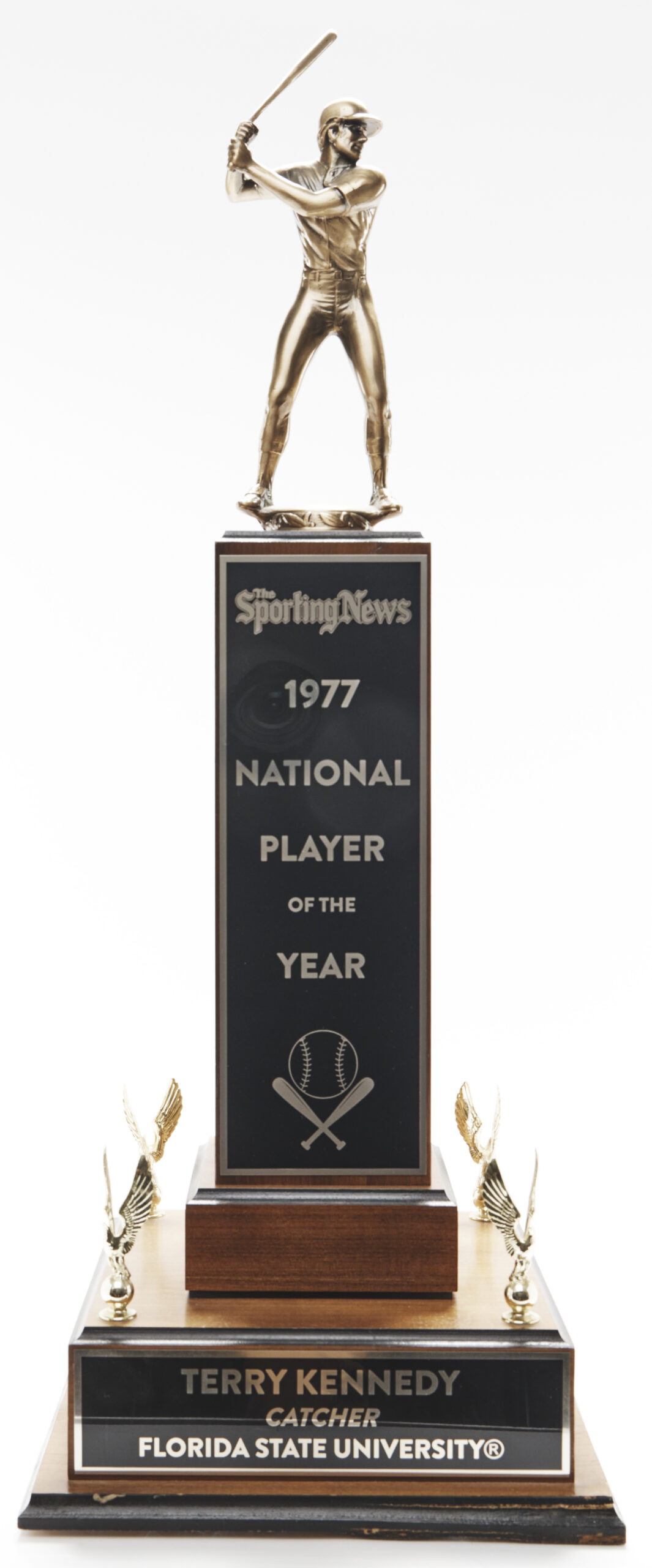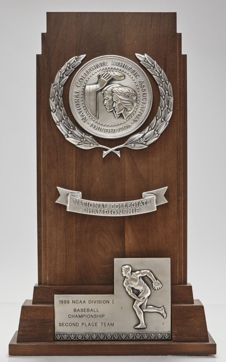 In coach Mike Martin’s 20th season at the helm, the Seminoles made a run to the 1999 College World Series (CWS). Led by junior third baseman Marshall McDougall, FSU notched a 46-10 regular season record before appearing in the Tallahassee Regional and Super Regional. The team went undefeated in both competitions to earn a CWS berth. The Noles marched through the field, meeting No. 1 Miami in the National Championship game before narrowly falling, 6-5. Though the Seminoles were unable to capture the ultimate victory, they did not go home empty-handed. McDougall was named the College World Series Most Outstanding Player. Five Seminoles, including McDougall, OF Matt Diaz, C Jeremiah Klosterman, IF Sam Scott and P Chris Chavez, were named to the College World Series All-Tournament Team. Finally, the team took home this runner-up trophy.