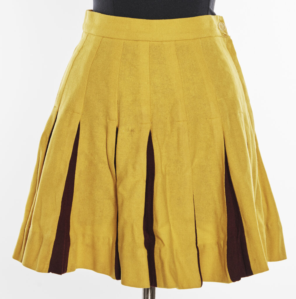 These vintage cheerleading garments — a Garnet and Gold sweater with a bold “FS” and a pleated skirt — showcase the timeless pride and school spirit of FSU’s early years. This uniform reflects the colors and style that came to define the Seminole sideline. Margaret “Maggie” Strum Acheson Allesee led the first cheer at the inaugural football game in 1947, earning the distinction of being FSU’s first head cheerleader and the first woman to receive a varsity letter. A 1949 FSU graduate, she was the only woman among the dozen founding members of the FSU Varsity Club and later earned four honorary doctorates in addition to her master’s and post-master’s degrees.