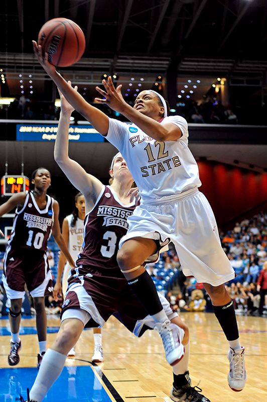 FSU made a historic run in the 2010 NCAA Tournament. After defeating Louisiana Tech and St. John’s in the first two rounds, No. 3 FSU faced No. 7 Mississippi State in the Sweet 16. The game came down to the wire. G Courtney Ward scored a pair of free throws to give the Seminoles a 72-66 lead with 18 seconds to play. Mississippi State quickly responded with a 3-pointer and two free throws to cut the deficit to just one point. But Ward continued her superb play, picking up a foul and draining two more free throws to boost FSU’s margin to 74-71 in the final seconds. “She looked over at me after she made the first one and winked and looked like ‘Yeah, I’ve got this,'” coach Sue Semrau said. The Seminoles closed out the victory and advanced to the first Elite Eight appearance in program history.