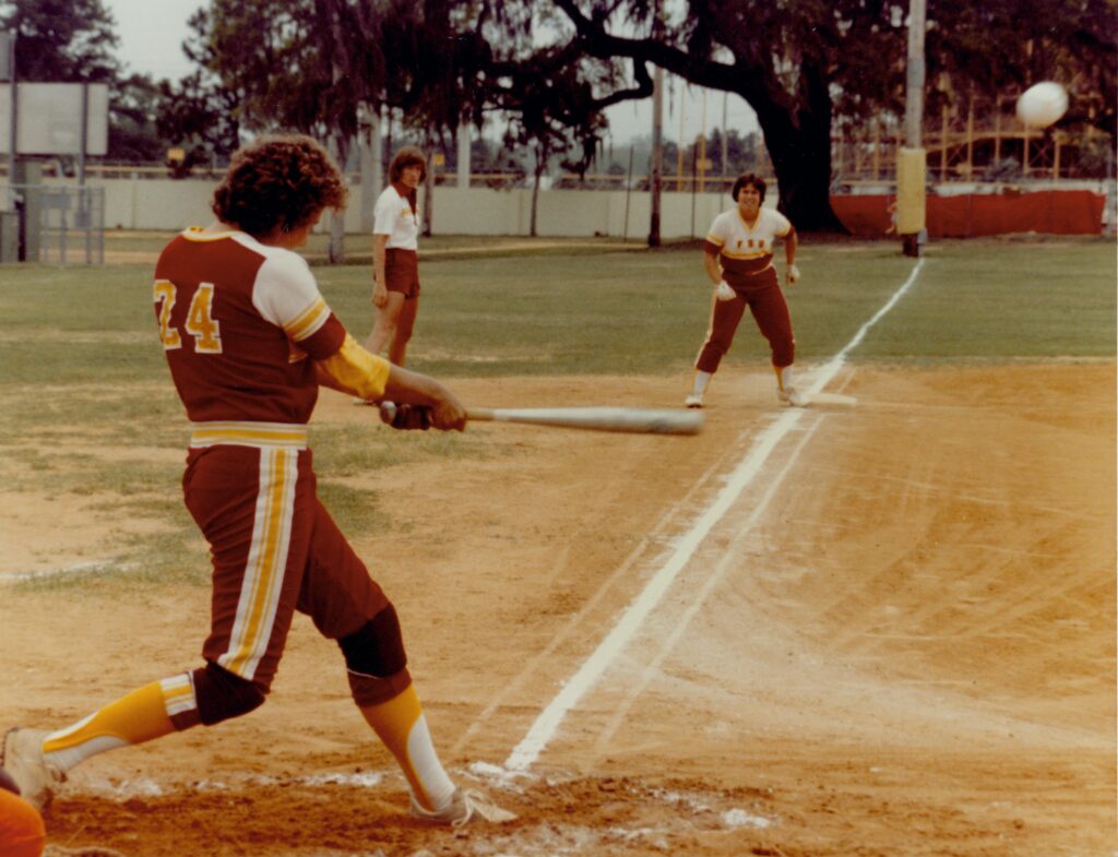 As the team’s field manager, Dr. JoAnne Graf didn’t shy away from actually getting on the field. She often served as third base coach, directing baserunners, giving signs to batters and rallying the troops from the hot corner. Dr. Graf had plenty of offensive firepower in the 1981 and 1982 AIAW National Championship teams, which included All-American OF Toni Robinette (No. 24). The Seminoles posted batting averages of .397 and .420, respectively, in those years, giving Dr. Graf many opportunities to guide the Noles around the base paths.