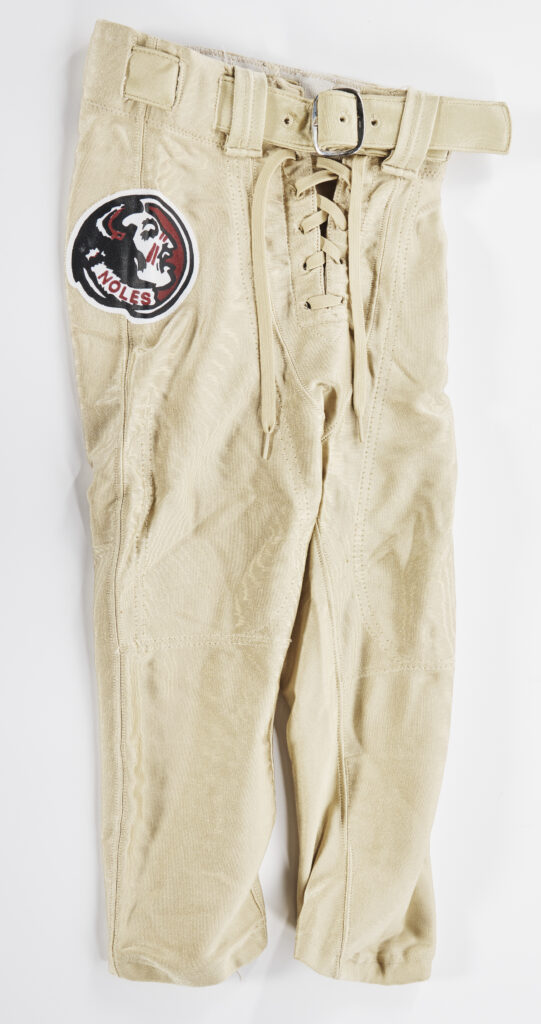 WR Peter Warrick electrified college football during his time in Tallahassee, helping lead the Seminoles to a 12-0 season and the 1999 National Championship. In the Sugar Bowl on January 4, 2000, Warrick was responsible for 20 points — the most to that point in Sugar Bowl history — with touchdown catches of 64 and 43 yards, a 59-yard punt return and a 2-point conversion. FSU retired Warrick’s No. 9 jersey in 2018. He remains one of the greatest receivers in program history today, boasting a career of 32 touchdown catches, 207 receptions and 2,517 receiving yards.