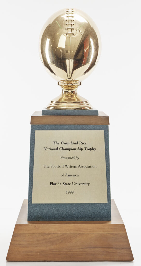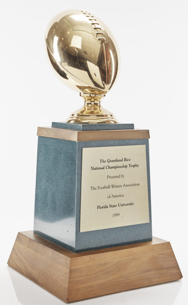 The Grantland Rice National Championship trophy is a relic of college football royalty. Named after the famed sports journalist who christened Notre Dame’s “Four Horsemen,” Grantland Rice was an integral part of the game. In 1999, FSU took home the acclaimed National Championship trophy for the second time in program history. Though Rice had passed by that time, there were plenty of writers to document FSU’s storybook ending. “A perfect finish to a season of imperfection. A wonderful capper to a decade of brilliance — even if it had to come four days into the new century. A game for the ages but not the aged. Well, excepting Florida State coach Bobby Bowden,” quipped sportswriter John Nogowski.