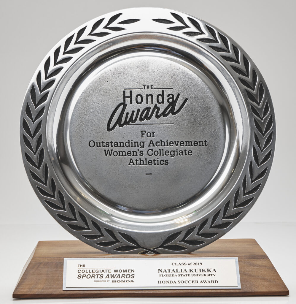 D Natalia Kuikka made program history by winning the 2018 Honda Sports Award, given to the top women athletes in 12 NCAA-sanctioned sports. She was the first FSU soccer player to take home the award. That season, Kuikka started in 24 games and was one of only four Seminoles with over 2,000 minutes played. She led a defense that allowed just 13 goals in 27 matches, a 0.47 percent goals-against average that ranked fifth best in the nation. Kuikka was also named a Second Team All-American by Top Drawer Soccer and a Third Team All-American by United Soccer Coaches that season.