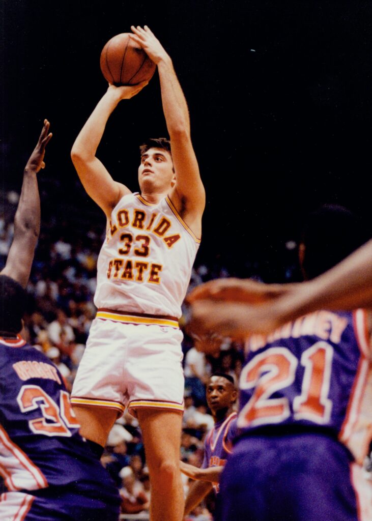 Tampa native F Byron Wells worked his way from limited playing time to becoming a reliable sixth man in his redshirt junior and senior campaigns. He played just 20 games over his first two seasons, then sat out the entire 1991-92 season due to an ankle injury. Upon his return, Wells made his name known with 13 points, eight rebounds and four blocks in a big win over Clemson in 1992, which led to more minutes. “This was the case of a guy getting an opportunity and doing something with it,” said coach Pat Kennedy. Wells appeared in two games in the 1992 NCAA Tournament and all four of FSU’s games in the 1993 NCAA Tournament. One memorable moment was a rim-rocking dunk against No. 6 Georgetown to help FSU advance to the Sweet 16.