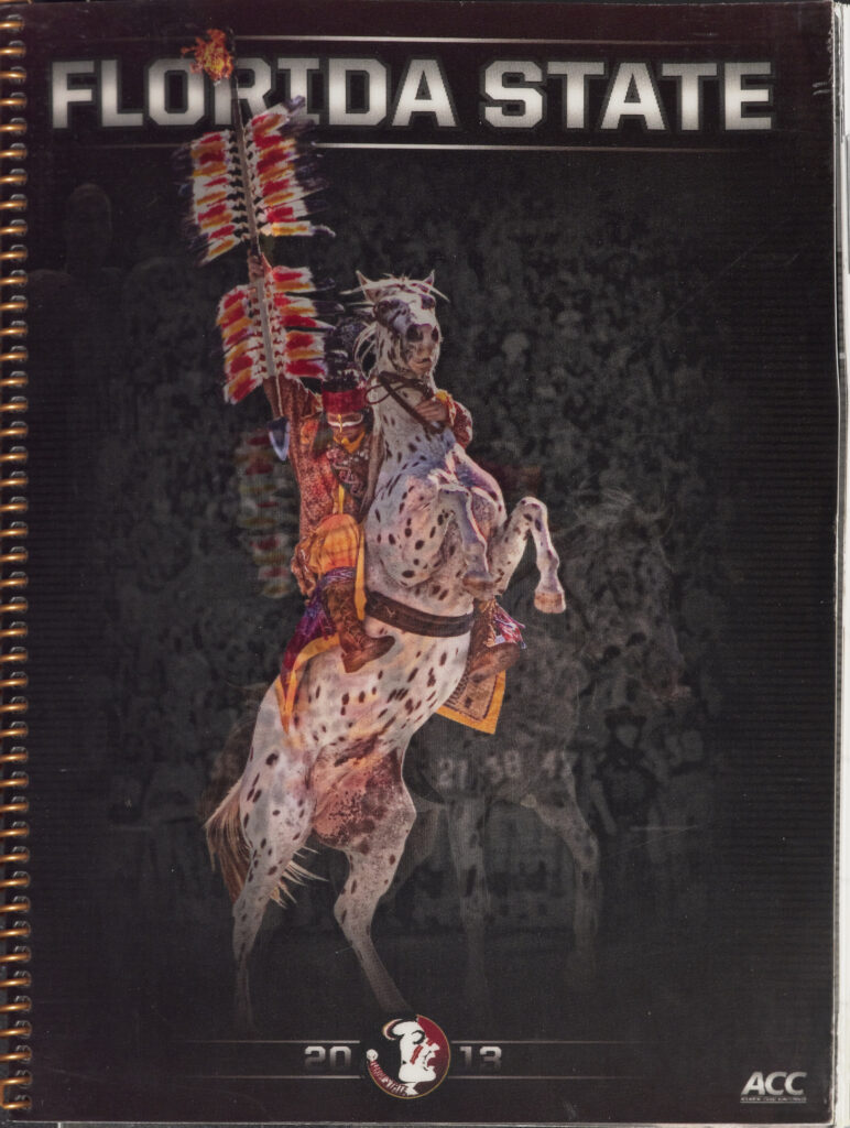 On the cover of the 2013 National Championship-winning team’s media guide are two of the most recognizable figures in college football. For decades, an actor playing Seminole warrior Osceola rides an Appaloosa horse named Renegade I onto the Doak Campbell Stadium turf, rallying fans to victory. FSU graduate Bill Durham started the tradition in 1978, and later received permission from the Seminole Tribe of Florida to go forward with it. The tradition honors the namesake of FSU’s athletics teams.