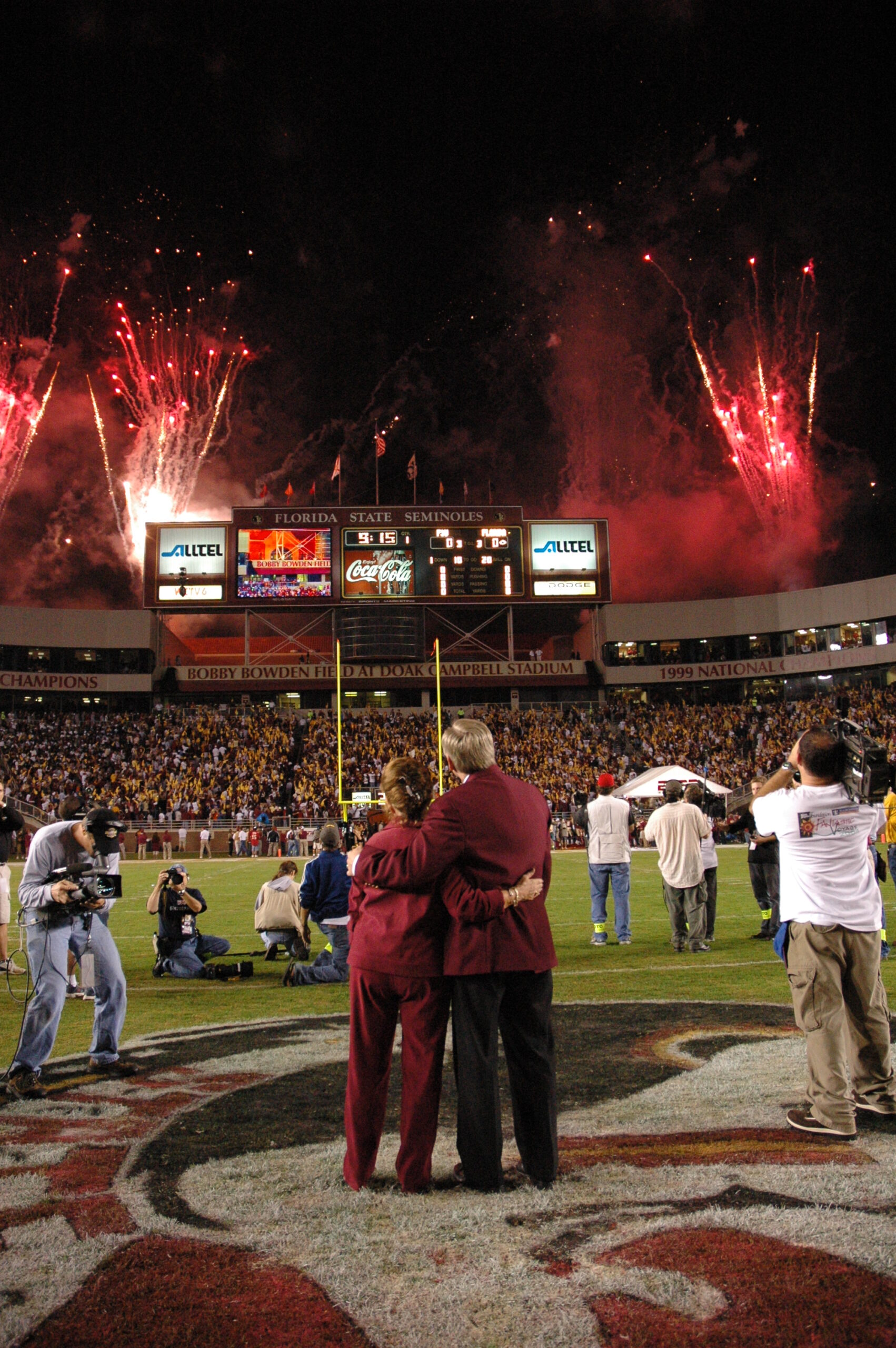 The 1950 team was the first in program history to complete an undefeated, untied regular season. Finishing 8-0 overall, the Seminoles claimed their third straight conference title. According to the Tallahassee Democrat, they became the first team from Florida to finish a season unbeaten and untied. That season also marked a turning point for the program’s facilities: on October 7, 1950, FSU played their first game in the newly constructed Doak Campbell Stadium, defeating Randolph-Macon 40-7. The stadium would go on to become one of the most iconic venues in college football and the lasting home of the Seminoles.