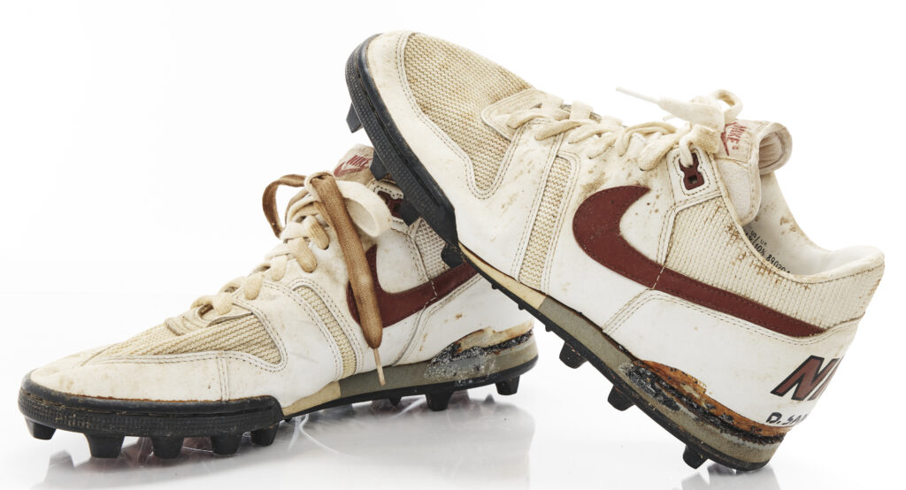 These game-worn cleats belonged to Deion Sanders, whose legendary career at FSU from 1985 to 1988 transformed him into one of the most iconic figures in college football history. A two-time consensus All-American, Sanders was a lockdown cornerback who also thrilled fans as a punt returner. At the end of his Noles career, Sanders set several program records: four interception returns for touchdowns, 126 punt returns and 1,429 yards on punt returns. His 14 interceptions remain in the top-3 in program history today. Sanders’ flair, confidence and talent made him the face of coach Bobby Bowden’s rising powerhouse program in the late ’80s. He later became a two-sport pro athlete, starring in both the NFL and MLB, and was inducted into the Pro Football Hall of Fame and College Football Hall of Fame. On October 7, 1995, FSU retired Deion’s No. 2 jersey.