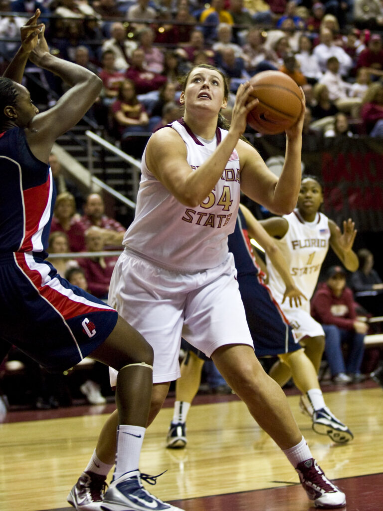 Sophomore C Cierra Bravard showed off her versatility during the 2009-10 season as FSU won another ACC regular season co-championship (shared with Duke). She recorded 10 double-doubles and had a knack for drawing fouls, going 64-of-94 from the free-throw line. She was one of only three Seminoles with at least 150 boards that season. Bravard recorded 10 points and a season-high nine rebounds off the bench in FSU’s victory over Mississippi State in the Sweet 16, helping the Seminoles to the first Elite Eight appearance in program history. At the end of her career, Bravard made a statement with 453 free throws made, the most since FSU Athletics Hall of Famer Sue Galkantas (485).