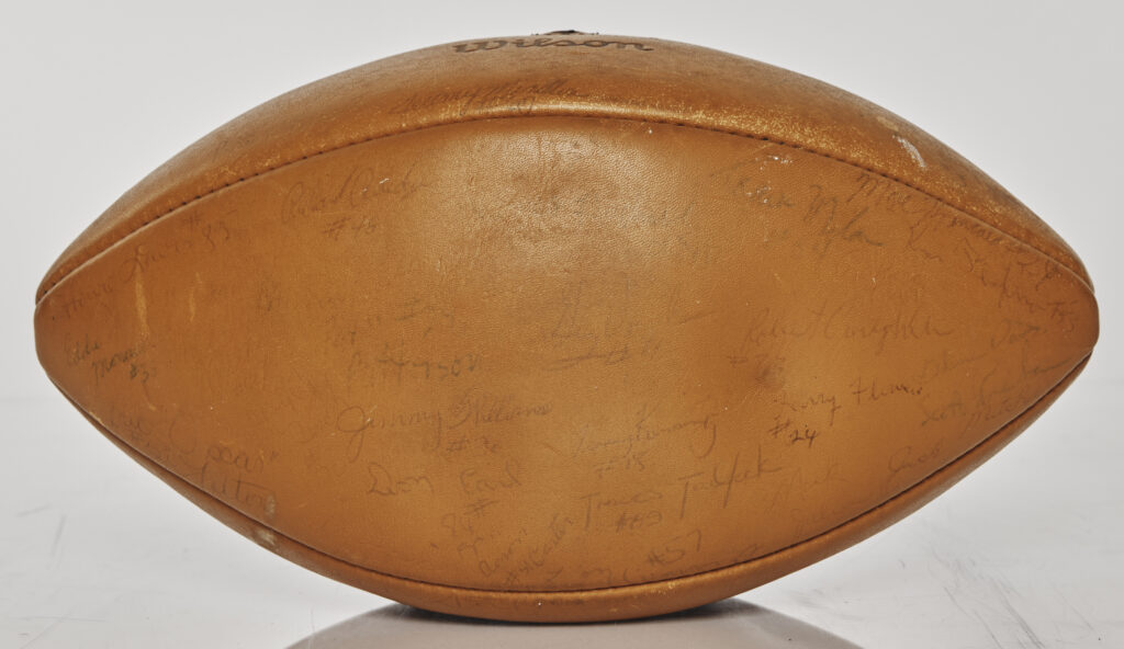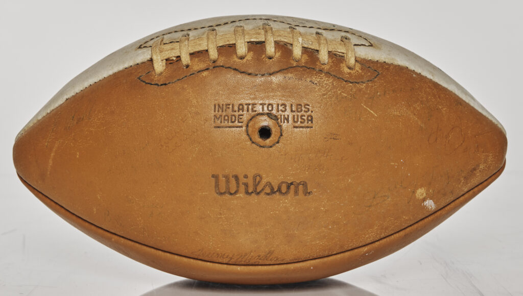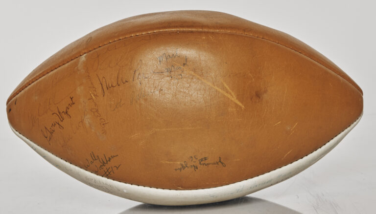This autographed football commemorates FSU’s 40-17 victory over Texas Tech in the 1977 Tangerine Bowl, played on December 23 in Orlando, Florida. The ball is signed by members of the Seminole team that capped off the program’s first bowl appearance in six years with a dominant performance. QB Jimmy Jordan threw for 311 yards and three touchdowns, while WR Roger Overby caught two scores to earn MVP honors. The game was a statement win for Bobby Bowden, then in just his second year at the helm. It also marked the beginning of FSU’s rise as a perennial bowl contender. The signatures etched into the leather capture a proud moment in program history and the energy of a team on the rise.