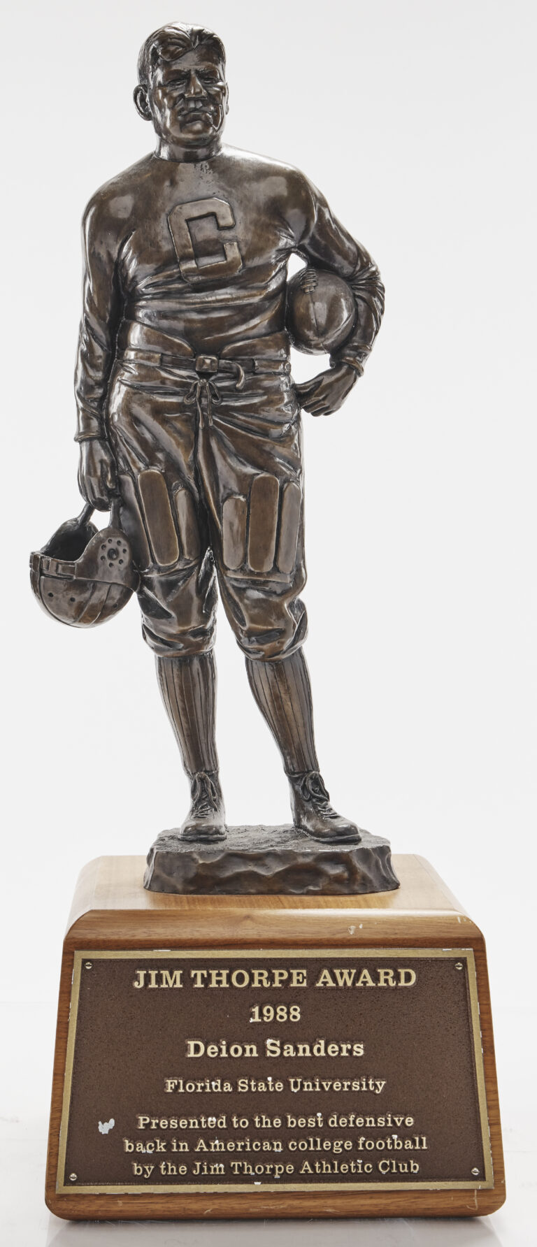 Arguably the greatest defensive back in FSU history, Deion Sanders added another accolade to his resume with the 1988 Jim Thorpe Award. That season, Sanders had five interceptions, including two pick-sixes, and he led the nation with a 15.24-yard punt-return average. He was also the first unanimous All-American in program history. “This is the culmination of my college career. Being an All-American wasn’t enough for me,” Sanders said. “I always wanted to be the best at my position, and now I am.” The Atlanta Falcons selected Sanders with the No. 5 pick of the 1989 NFL Draft, and he spent 14 years in the NFL. In 2011, Sanders was inducted into both the Pro Football Hall of Fame and the College Football Hall of Fame.
