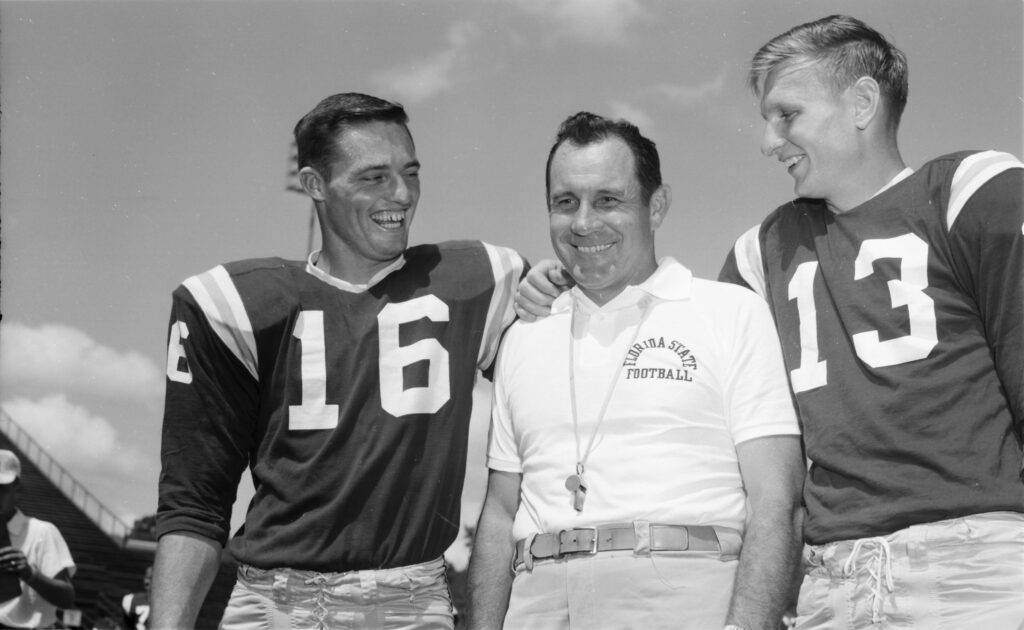 Head coach Bill Peterson led the Seminoles from 1960 to 1970. Hired on December 7, 1959, after serving as an assistant at LSU, Peterson took over following the departure of Perry Moss. During his tenure, “Coach Pete” laid the groundwork for FSU’s rise as a national football program, recruiting talented players and hiring assistants who went on to become coaching greats themselves. One of Peterson’s most enduring legacies is the Sod Cemetery tradition, which began on October 18, 1962. After a historic 18-0 upset over Georgia in Athens, team captain Gene McDowell brought back a piece of turf from Sanford Stadium at the request of faculty member Coyle Moore. Peterson buried it on the practice field, beginning a ritual that continues to this day, with each “sod victory” memorialized outside Doak Campbell Stadium.