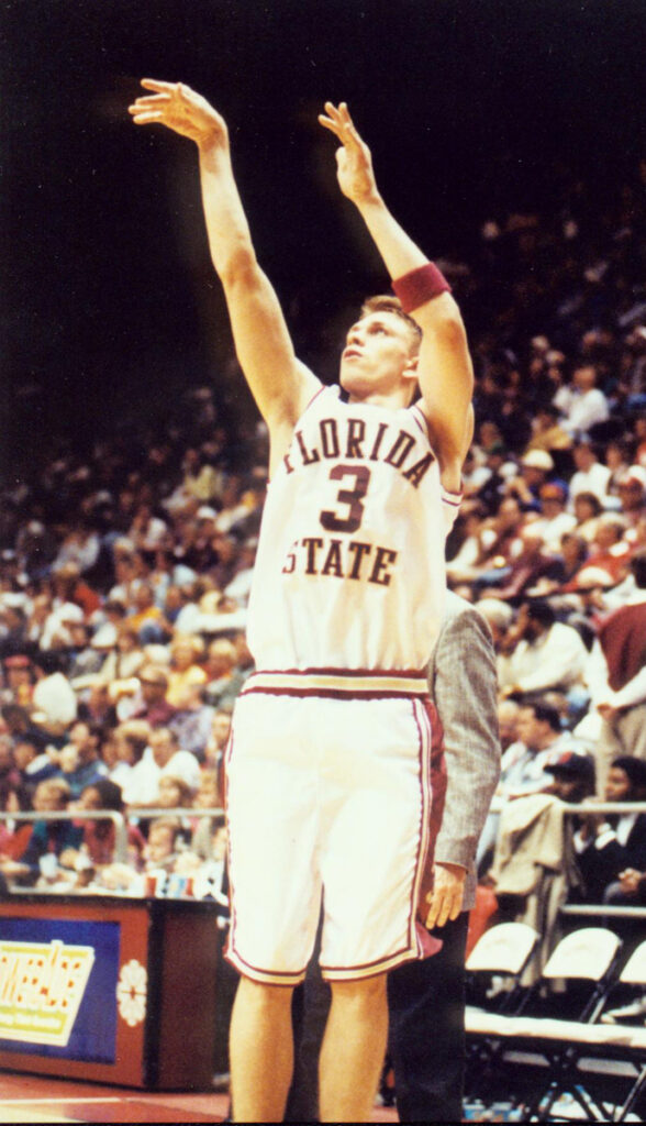Despite his youth, G Bob Sura played a critical role in FSU’s NCAA Tournament runs in his freshman and sophomore seasons. As the 1992 ACC Freshman of the Year, Sura tallied 32 points in three games as the Seminoles advanced to the Sweet 16 for the first time in two decades. He came back stronger in the 1993 NCAA Tournament, with 57 points in four contests. Sura’s 17 points led the team in a loss to powerhouse No. 3 Kentucky in the Elite Eight. Wake Forest coach Dave Odom, whose team also faced the Wildcats in the tournament, said Sura wouldn’t be rattled by Kentucky’s pressure. “Sura does not know what intimidation means,” Odom said. At the end of his career, Sura became the all-time leading scorer in program history with 2,130 points.