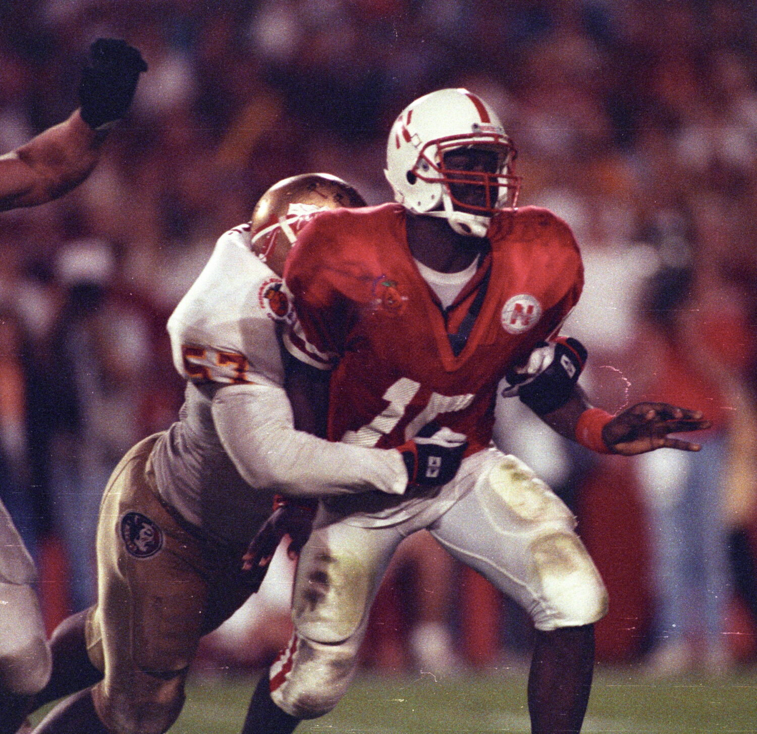 This photo captures a pivotal moment at the line of scrimmage during the 1994 Orange Bowl, where FSU battled Nebraska for the 1993 national title. In a game dominated by grit and defense, the Seminole ...