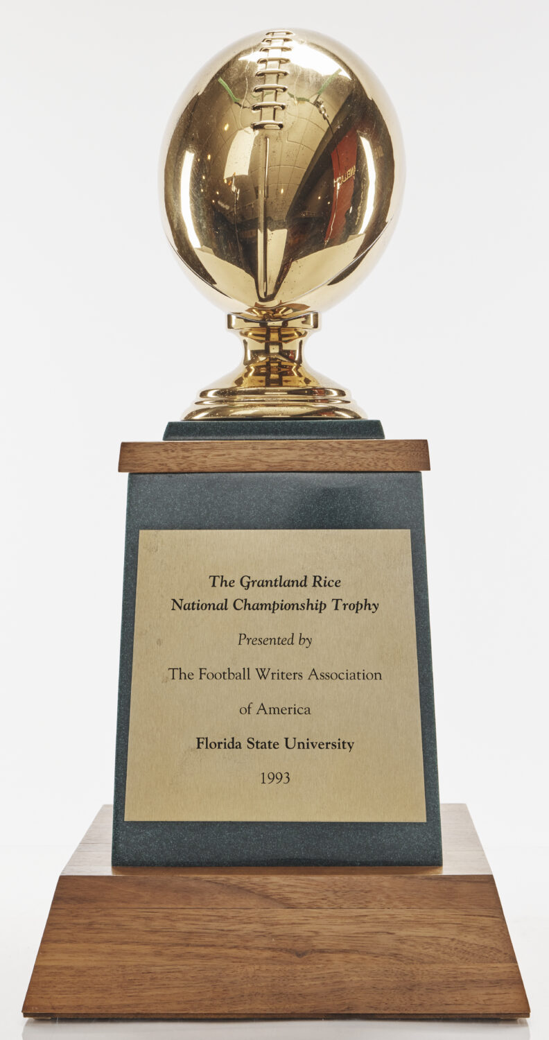 Awarded annually by the Football Writers Association of America, the Grantland Rice Trophy recognized FSU as the 1993 National Champion. This honor, named after legendary sportswriter Grantland Rice, ...