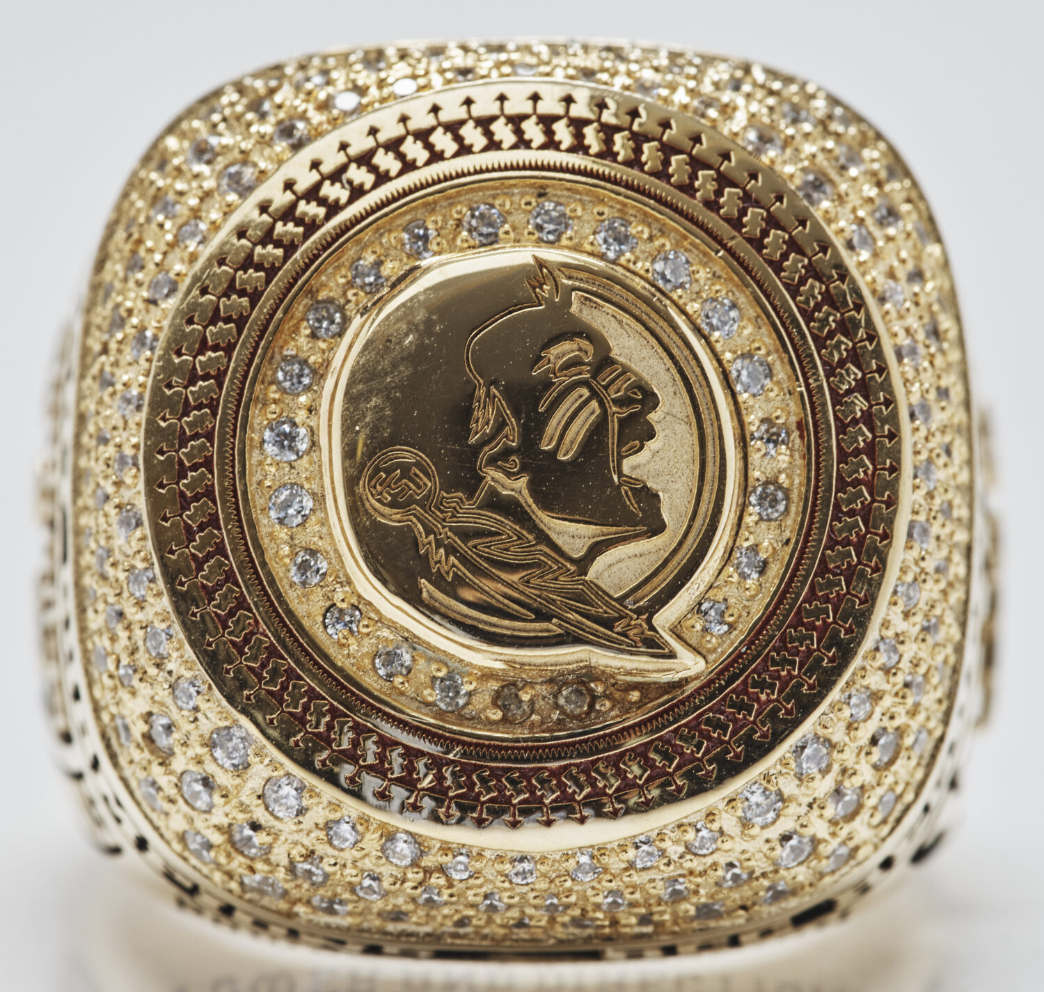 The Seminoles commemorated their national runner-up finish in 2023 with these flashy rings. Take a close look at the details, from the team’s season record and slogans to the FSU spear on the undersid ...