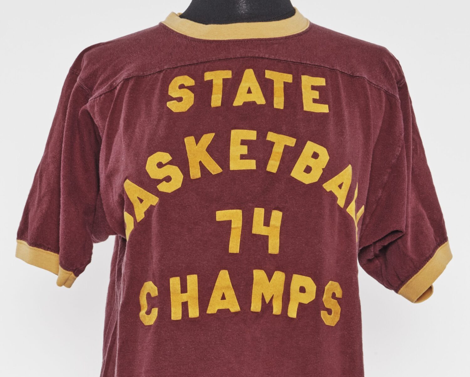 This garnet shirt likely belonged to No. 12 Susan Brown, a sophomore from Titusville, Florida, commemorating FSU’s 1974 Florida State Championship. After defeating Florida and Flagler College, the Sem ...