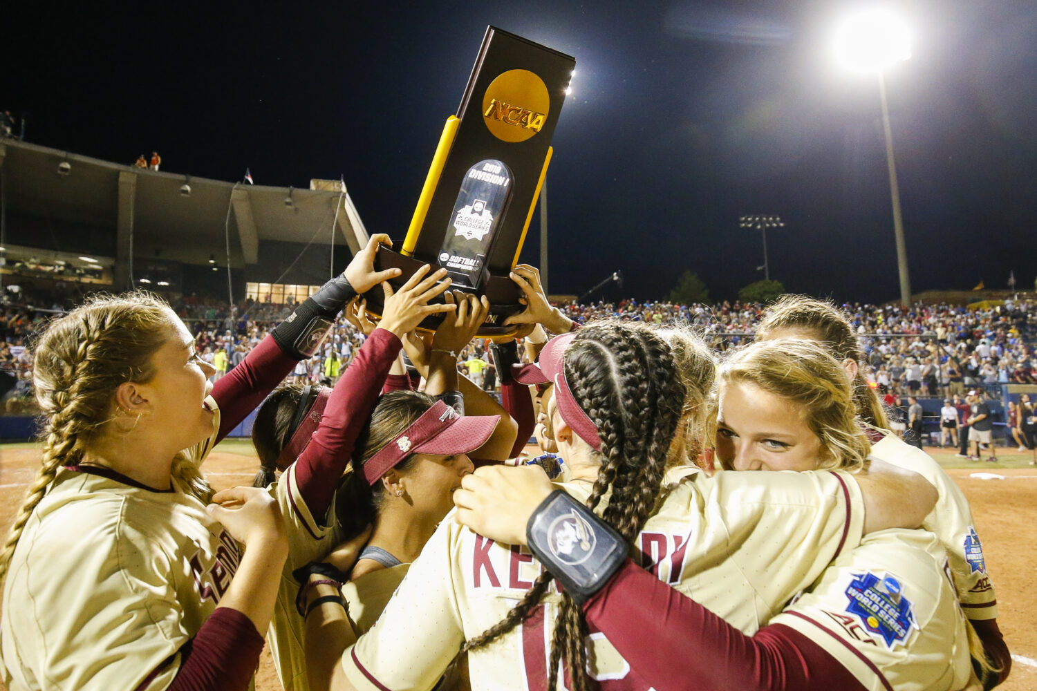 FSU players hoisted the National Championship trophy following Game 2 of the 2018 Women’s College World Series finals in Oklahoma City. The No. 6 Seminoles defeated No. 5 Washington, 8-3, to complete ...
